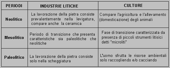 Ho inserito alcuni esempi in cui compaiono diversi tipici manufatti litici che rappresentano le principali culture