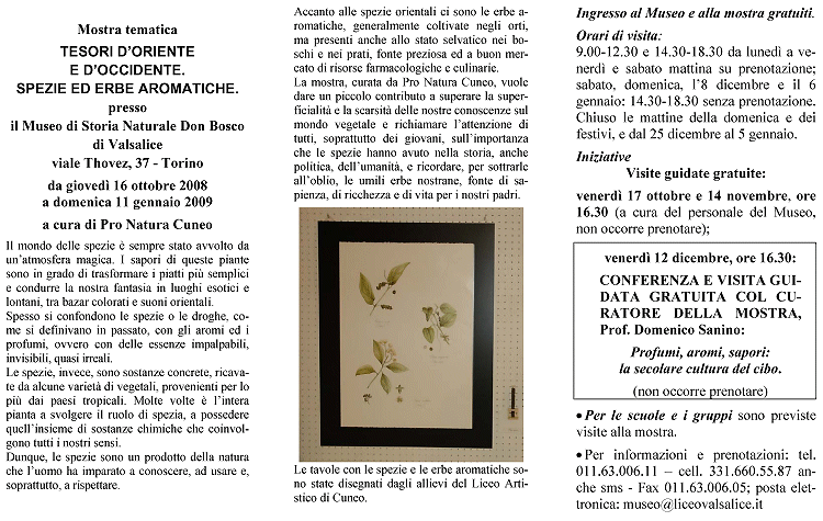 Mostra tematica sulle spezie ed erbe aromatiche:
