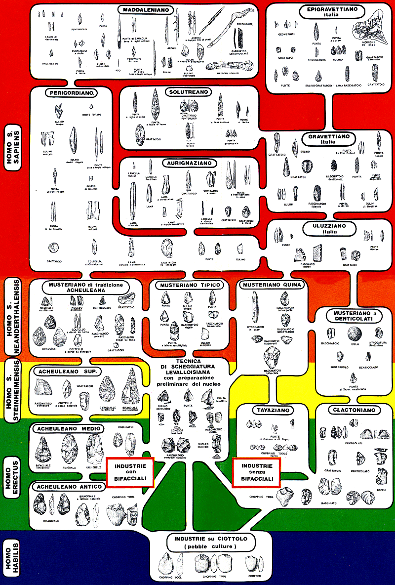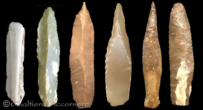 Ho inserito alcuni esempi in cui compaiono diversi tipici manufatti litici che rappresentano le principali culture