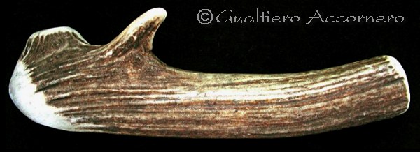 ![]() Un percussore "tenero" per eccellenza L'immagine ritrae una porzione di corno di cervo arrotondato in alcune zone in modo da ottenere un impatto puntiforme. Solo i nostri antenati apparteneti a culture più evolute usarono questo materiale avendo capito che con un percussore tenero si ottegono lavori più precisi e che il nucleo di selce non si spezza così facilmente. |