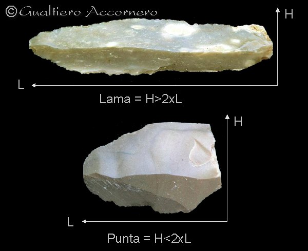 ![]() Tipologia delle schegge In questa tavola sono rappresentate le due tipologie della scheggia: la lama e la punta con le dimensioni che le contaddistinguono. |