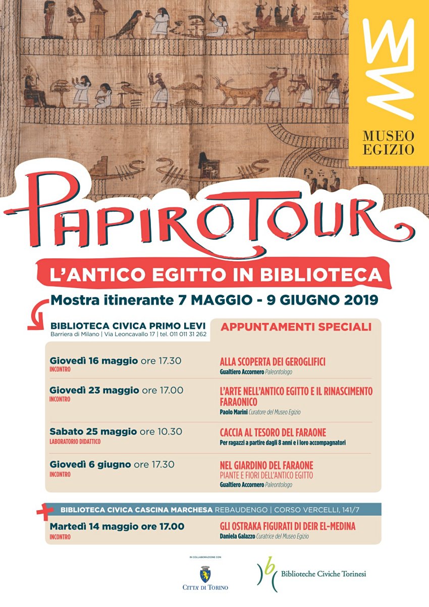 Il Museo Egizio di Torino in collaborazione con le Biblioteche Civiche Torinesi ha organizzato un ciclo di cinque conferenze divulgative sull'argomento Egittologia battezzate Papiro Tour e specialmente indirizzate ai giovani.