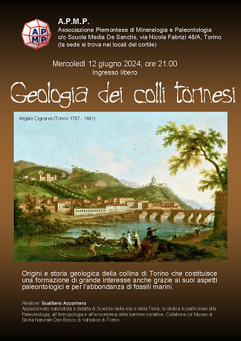 Geologia dei colli torinesi Presso La APMP (Associazione Piemontese di Mineralogia e Paleontologia) Sede: via Nicola Fabrizi n°48/A (cortile ex Scuola Media De Sanctis, ora Costantino Nigra), 10143 Torino Sito Web: https://apmpsite.wordpress.com |