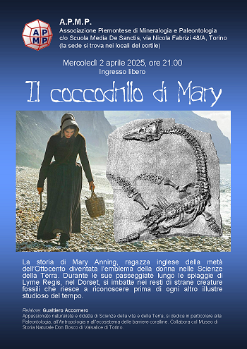 L'incontro avrà luogo il mercoledì 2 aprile 2025 alle 21.00 presso la sede della APMP (Associazione Piemontese di Mineralogia e Paleontologia), in via Nicola Fabrizi n°48/A 10143 Torino (la sede si trova nei locali Scuola Media De Sanctis che si trovano nel cortile.
