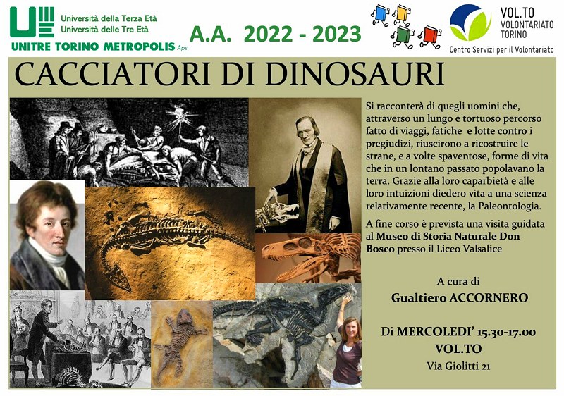 Il corso, organizzato dalla Unitre Torino Metropolis, nell'ambito dell'Anno Accademico 2022-2023, è composto da otto lezioni su temi vari di paleontologia.