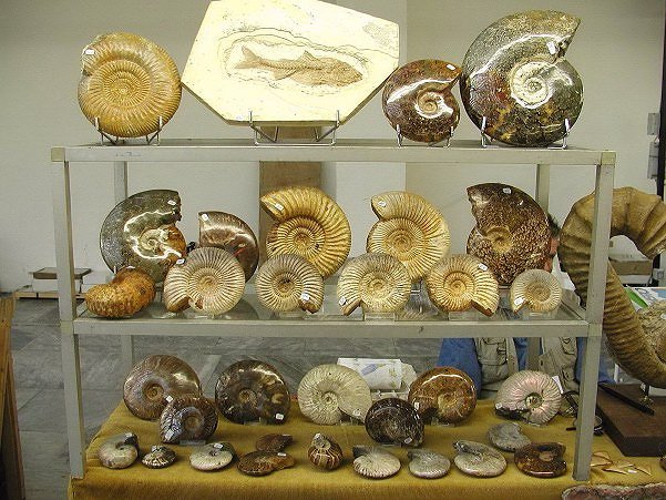 Vetrina con splendidi esemplari fossili di ammoniti.