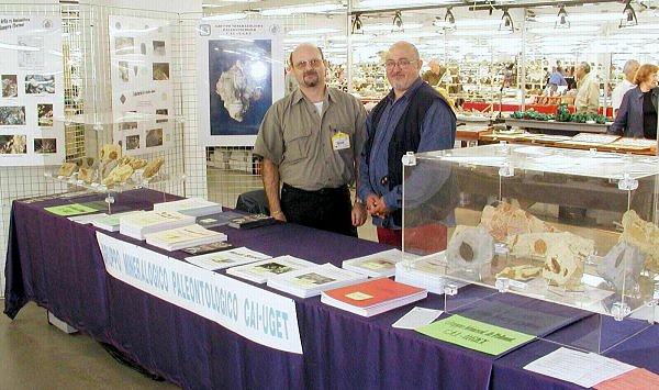 Tavolo del Gruppo Mineralogico Paleontologico del CAI sezione UGET di Torino. A sinistra il dottor Piero Damarco del direttivo della sezione e responsabile dell' Ente Parchi e Riserve Naturali Astigiani.