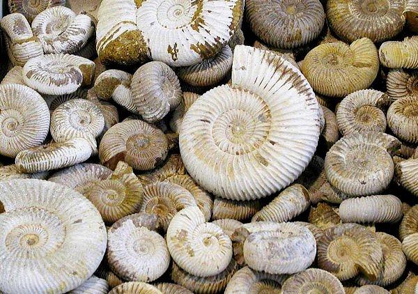 Per rimanere sul tema dell'eccezionalità ho riportato la foto di alcune ammoniti di notevoli dimensioni, sia intere che abilmente sezionate (a destra).