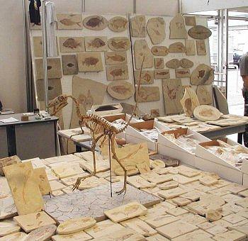 Tavolo con esemplari fossili provenienti dalla Francia: particolare.