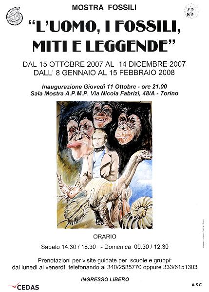 L'uomo, i fossili, miti e leggende Presso la APMP (Associazione Piemontese di Mineralogia e Paleontologia) Sede: via Nicola Fabrizi n°48/A (cortile Scuola Media De Sanctis), Torino Telefono: 011-755777 E-mail: apmp.minerali@tiscali.it |