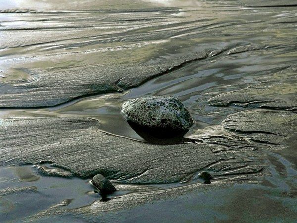 Impronte sulla sabbia In questa foto di una spiaggia (presa da uno screen-saver) ritrae dei ciottoli depositati dalle onde sulla sabbia finissima: è un buon punto di partenza per comprende il processo che porta alla formazione di una traccia fossile. La corrente non è in grado di spostare i ciottoli che affondano nel sedimento morbido. La sabbia argillosa della spiaggia, trascinata dalla risacca, crea delle tracce particolari intorno ai ciottoli. Immaginiamo ora che questo scenario, in seguito ad un normale evento naturale improvviso, venga ricoperto in breve tempo da uno strato di sabbia grossolana. Il gioco è fatto. |