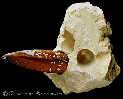 Molluschi litodomi Questi squisiti molluschi (sono a pericolo di estinzione pertanto sono protetti) sono comunemente chiamati "datteri di mare" per la forma ed il colore che ricorda questo frutto. Creano il proprio rifugio scavandolo nella roccia (da come si evince dal termine derivante dal greco - latino). La conchiglia secerne un potente acido che è in grado, con il tempo, di corrodere le rocce calcaree tanto da formare profonde gallerie in cui il mollusco ha rifugio. A sinistra: ciottolo calcareo, prodotto dallo smantellamento di rocce della costa della Croazia, presenta tracce di antiche gallerie scavate da antichi litodomi (Oligocene). A destra: un litodomo attuale nelle roccia che lo ospita (spiagge della Croazia). |