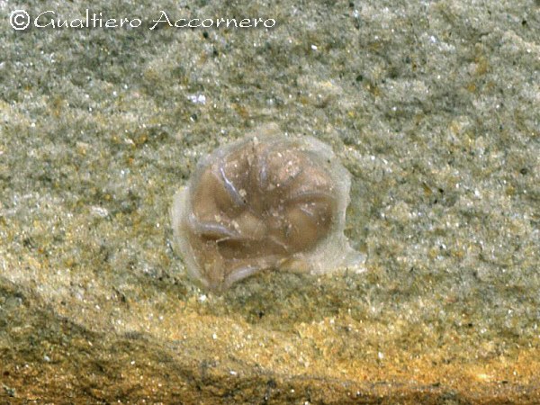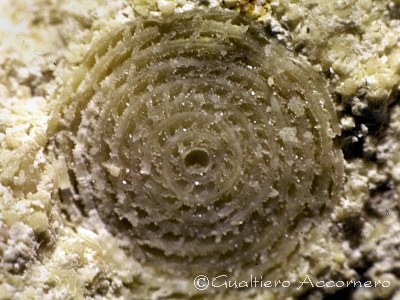 In un campione di marna silicea compare inglobato un microfossile: si tratta un foraminifero del diametro di circa 1,5 mm. del genere Robulus sp. (Aquitaniano, Miocene inf. dei colli torinesi).