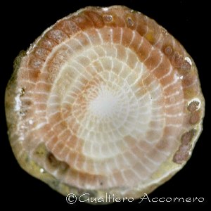 Nelle macro-fotografie si possono vedere due nummuliti dell'Eocene di Schio (VI), sezionati in sul piano "equatoriale". La forma a sinistra (diametro di circa 5 mm) risulta un caso fortuito di sezione naturale, mentre l'esemplare a destra (del diametro di circa 15 mm). l'ho sezionatto e lucidato a "specchio" impiegando un vetro con polvere di carborundum e rifinito con pasta abrasiva per la lucidatura.
