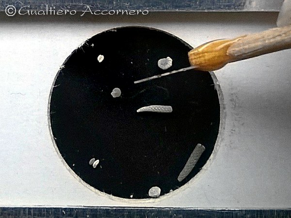 Nel caso di piccoli esemplari viene utilizzato un crine incollato ad un piccolo manico di supporto che, inumidito con la saliva, viene impiegato per prelevare un campione dopo l'altro.