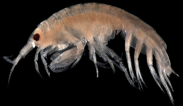 L'Anfipode (gamberetto) del lago Bajkal Leucothoe incisa scopertto dal naturalista polacco Benedykt Dybowski (1833 - 1930) che inizialmente battezzò col nome Gammaracanthuskytodermogammarus loricatobaicalensis (immagine tratta da Wikipedia). |