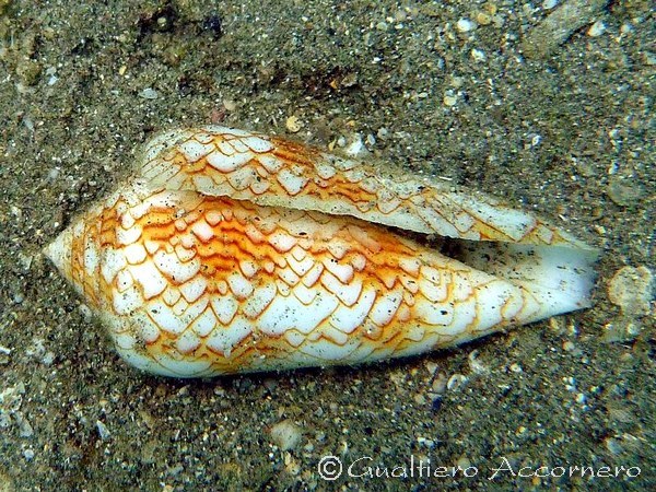 Note - Un Gasteropode di indubbia bellezza comune e frequente anche nelle acque basse, ma perisolosissimo. Come tutti i Conidi è provvisto di un aculeo velenoso con cui caccia le prede e si difende dai predatori. Il veleno, contenente neurotossine appartenenti alla famiglia dei contrifani, è pericoloso e spesso mortale anche per l'uomo. Non esiste un antidoto per questo veleno.