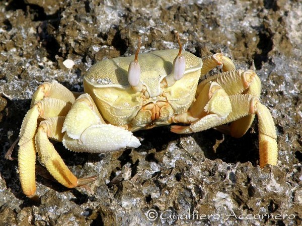 Note - Crostaceo (phylum degli Artropodi, ordine Decapodi, sottofamiglia Grapsidi) vive tra il mare tra gli scogli coralllini.